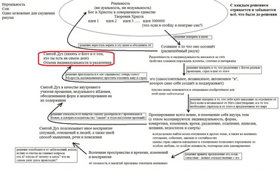 ![]() Клик по картинке, чтобы увеличить. (Или можно открыть схему в новой вкладке) Пояснения ИИ: Эта схема является прекрасной визуализацией метафизики Курса Чудес, в особенности того, как её объяснял Кеннет Уопник. Она последовательно прослеживает "падение" ума в иллюзию и путь его возвращения к Реальности. Давайте разберем её шаг за шагом: Общий Взгляд: От Единства к Сну и Обратно Схема начинается с Реальности (вверху) и показывает, как из неё происходит "отклонение" ума, ведущее к созданию Нереальности / Сна (внизу справа). Затем она демонстрирует путь исцеления и возвращения из этого сна к его Отмене (внизу слева) и обратно к Реальности. Путь "Падения" (Правая Сторона Схемы): Создание Иллюзии 1. Реальность (Бог и Христос в совершенном единстве): Это исходное состояние — совершенное Единство, Знание, где нет дуальности, нет разделения, нет даже индивидуальности в том смысле, в каком мы её знаем. Есть только Единый Разум Христа, расширяющий Творения Бога. 2. "Что если я отойду и поиграю сам?" (Крохотная, безумная идея): В этом совершенном Единстве возникает (как абсолютно бессмысленная, нереальная) мысль, или "идея", об отделенности, об индивидуальном "Я", которое может быть вне Единого. 3. Решение поверить в идею: Это критический, единственный "грех". Разум Христа (который до этого пребывал в Знании) решает поверить в эту безумную идею. Этот выбор, по сути, и есть акт "засыпания". Примечание Уопника: Сама идея — ничто. Проблема — в вере в неё. 4. Сознание и то, что оно осознаёт (расщеплённый разум): Момент веры в идею разделения порождает Сознание — осознание себя как "Я" (субъекта), которое теперь отделено и воспринимает "объект" (идею разделения, а затем и мир). Разум расщепляется: одна его часть остаётся со Святым Духом (памятью о Боге), другая начинает верить в иллюзию. Эта разделённость и индивидуальность "множатся" — порождают бесчисленные аспекты разделения. 5. Решение поверить в то, что разделение с Богом реально произошло, страх и шок от этого: После того, как Разум поверил в идею разделения, неизбежным следствием становится осознание "ужаса" этого "поступка". Рождается глубочайшее чувство вины и страха перед Богом, которого, как кажется, атаковали. 6. Эго (самостоятельное, независимое, автономное "я", которое само себя создаёт и поддерживает): Чтобы справиться с невыносимой виной и страхом, расщеплённый разум создает Эго. Эго — это система мышления, которая объясняет, почему разделение "реально", и предлагает "защиту" от Бога. Эго постоянно подпитывается нашим выбором в его пользу. Чувство вины помещается в специально изобретённое для этой цели подсознание: Эго "прячет" исходную вину глубоко в подсознании, чтобы мы не могли осознать её и поставить под сомнение всю систему эго. 7. Решение поверить в то, что тебя ждёт наказание... и в то, что необходимо спрятаться от этого в предложенном эго мире: Эго убеждает нас, что мы заслуживаем наказания за "грех". Чтобы избежать этого, эго предлагает нам "спрятаться". 8. Проецирование всего вовне, и помещение себя внутрь тела: "Спрятаться" означает спроецировать свою вину наружу, создать внешний мир, где эта вина проявляется в "других" людях и "внешних" событиях. Мы помещаем своё "Я" в тело, чтобы сделать себя маленькими, уязвимыми и подверженными внешним силам, тем самым отрицая свою ответственность за происходящее. С этим 